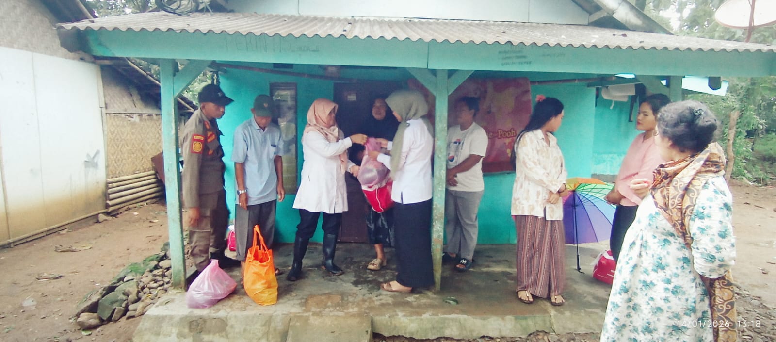 Bantuan tersebut diserahkan langsung oleh Camat Cimanggu Hj. Encun Sunayah, SKM., MM, didampingi Tenaga Kesejahteraan Sosial Kecamatan (TKSK), tim dari Kecamatan Cimanggu, serta Sudrajat selaku Kasi Kesejahtraan Desa Tangkilsari.
