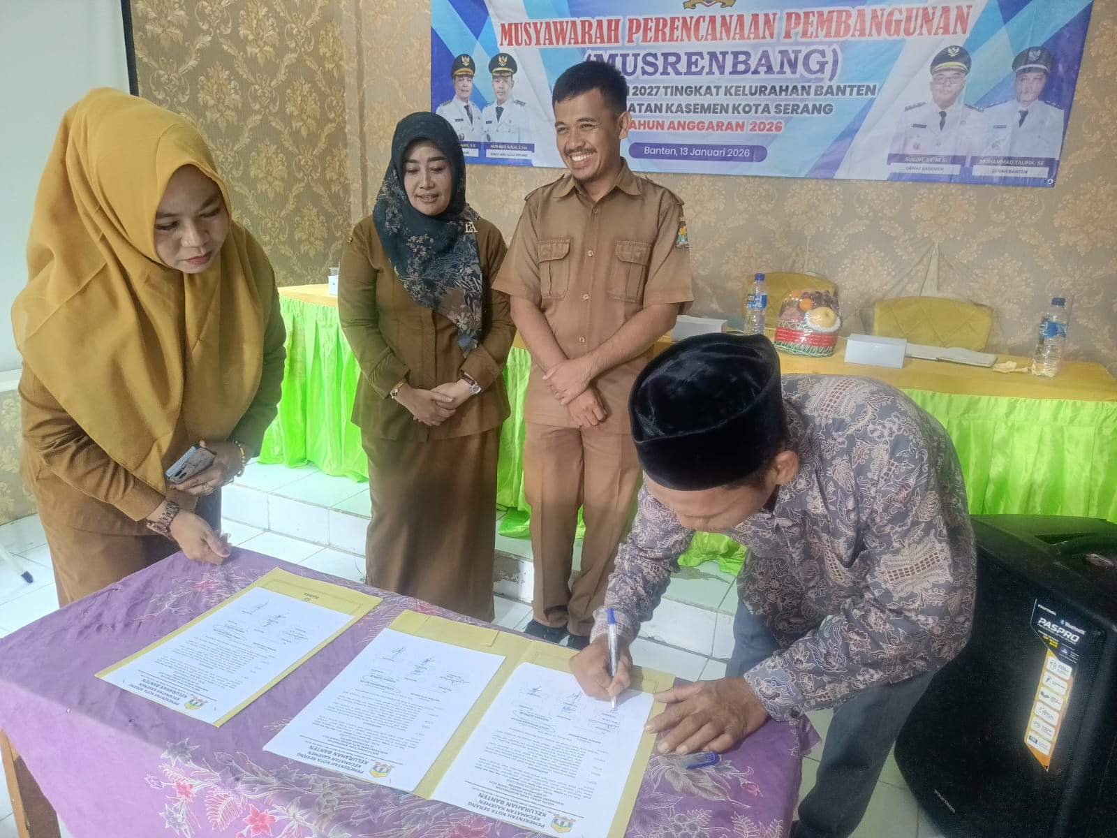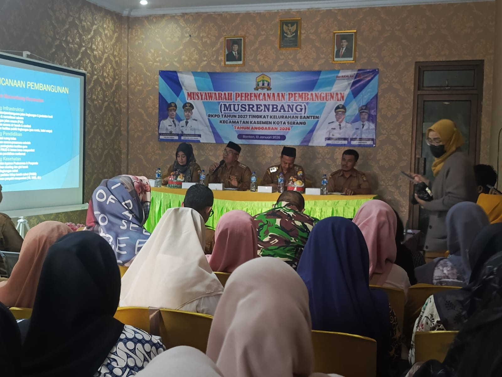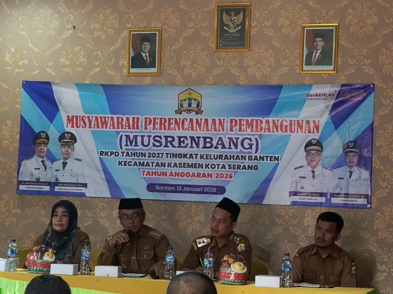 Musrenbang RKPD tahun 2027 tingkat kelurahan Banten tahun anggaran 2026 tersebut dihadiri oleh narasumber dari Bapperida Kota Serang dan perwakilan Dinas PUPR Kota Serang, Camat Kasemen Sugiri, ST, M.Si, Lurah Banten Muhammad Taufik, SE, Babinsa, Babinkamtibmas Polsek Kasemen, Kader Posyandu, kader PKK, tokoh masyarakat, mahasiswa Untirta Serang, Ketua RT/RW se-Kelurahan Banten beserta undangan lainnya