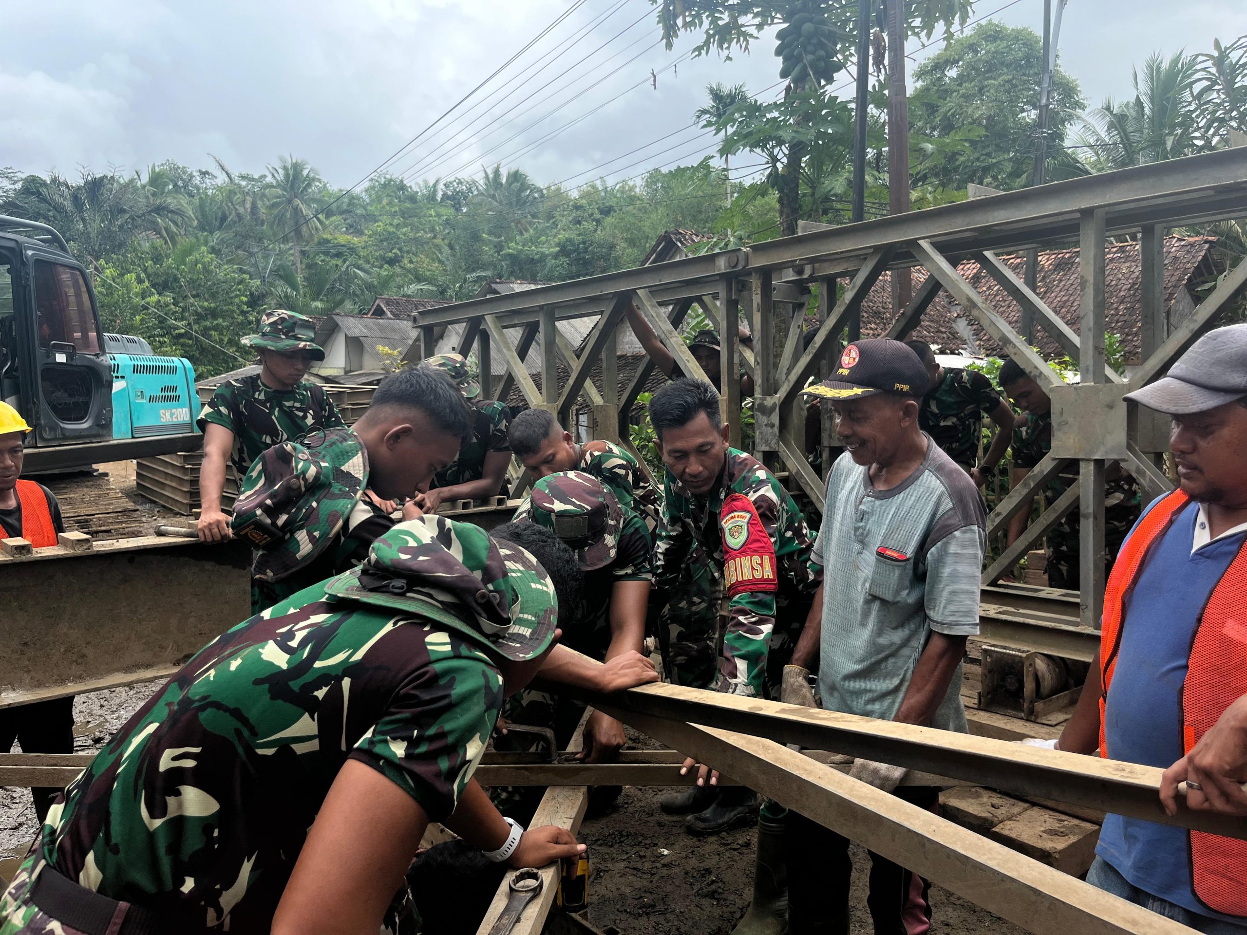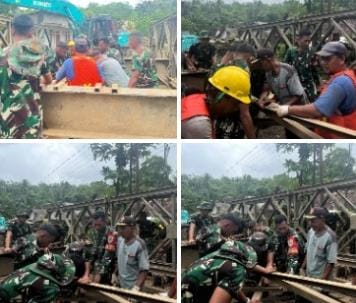 Bungas Banten, PANDEGLANG – Pada Sabtu, 27 Desember 2025, Kapten Inf Subata, selaku Danramil 0115/Cimanggu,Kodim 0601/Pandeglang, melaksanakan kegiatan kerja bakti pemasangan Jembatan Bailey bersama masyarakat dan anggota YTP 842/Badak Sakti.