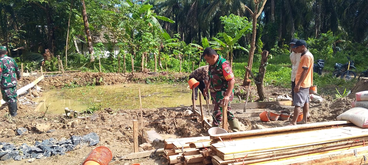 Hata, S.Pd.I, menyampaikan ucapan terima kasih kepada Danramil dan Babinsa atas kunjungan serta dukungan yang diberikan terhadap pembangunan Dapur MBG tersebut.