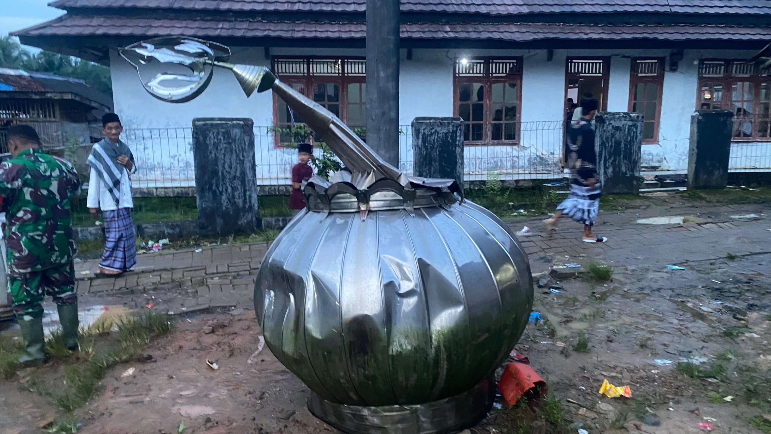 Peristiwa tersebut mengakibatkan sembilan rumah warga mengalami kerusakan ringan hingga berat serta satu kubah Masjid Jami runtuh.
