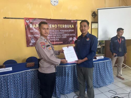Bungas Banten, POLRES LEBAK  -Guna menjaga Kamtibmas Kanit Binmas Polsek Cilograng Bripka Agus Hendriyana S.H melaksanakan Giat Rapat Pleno Terbuka tingkat Desa Gunungbatu Kp.Gungbatu Desa Gunungbatu Kec.Cilograng Kab.Lebak.