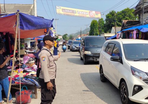 Polri juga hadir melaksanakan pengaturan dan menyeberangkan warga yang akan berbelanja dipasar supaya tidak timbulnya kemacetan dijalan dan tidak terjadinya kecelakaan lalulintas.