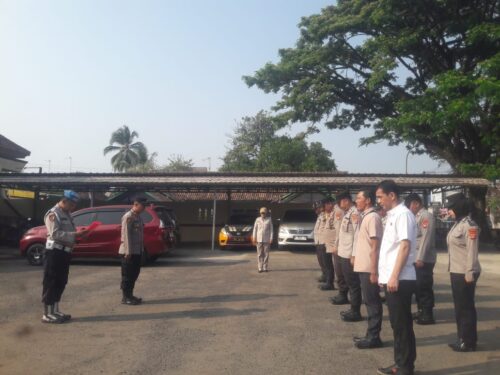 Kapolsek Rangkasbitung Polres Lebak Apel Pagi Bersama Personil di Halaman Mapolsek