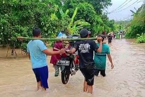 Selain itu, akses jalan utama yang menghubungkan Kecamatan Sukaresmi dengan wilayah lainnya juga terendam, membuat kendaraan sulit melintas. Warga yang mengandalkan kendaraan roda dua terpaksa harus mentandu sepeda motor mereka melintasi genangan air yang cukup tinggi.