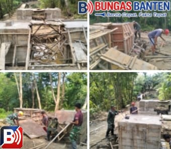 Bungas Banten, PANDEGLANG – Personel Tentara Nasional Indonesia (TNI) bersama warga setempat mempercepat pembangunan jembatan gantung yang menghubungkan Kampung. Blengbeng, Desa Cikeusik, Kecamatan Cikeusik, Kabupaten Pandeglang. Propinsi Banten, Pada Sabtu (20/2/2026)