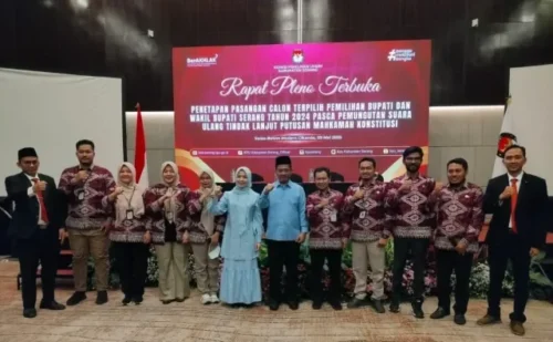 Bungas Banten, KABUPATEN SERANG – Komisi Pemilihan Umum (KPU) Kabupaten Serang kini telah menetapkan Pasangan Calon (Paslon) Bupati dan wakil Bupati Serang nomor urut 02, Ratu Rachmatuzakiyah – Najib unggul telak dalam Pemungutan Suara Ulang (PSU) Pilkada 2024 Kabupaten Serang terpilih periode 2025-2030.