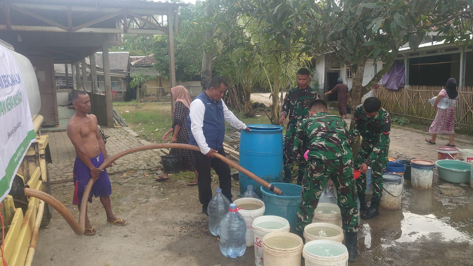 Sementara itu,Eri Piatna selaku Relawan Rumah Yatim juga menyampaikan apresiasi dan terima kasih kepada seluruh donatur dan pejuang kebaikan, serta kepada para relawan dari KNPI, KSB, BPBD Kabupaten Pandeglang, dan prajurit Yonif TP 842/Badak Sakti yang secara sukarela bahu-membahu menyalurkan bantuan air bersih bagi masyarakat terdampak banjir di Desa Surianeun.