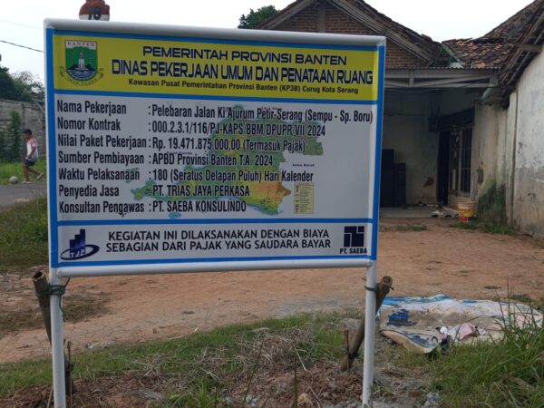 Bungas Banten, SERANG – Dengan adanya kegiatan pemasangan Beton U-Dhit berlokasi di Cilaku kecamatan Cipocok Jaya dengan nama Pekerjaan Pelebaran Jalan Ki Ajurum Petir – Serang ( Sempu – SP Boru ) dengan Nilai Rp 19.471.875.000,00, Nomor Kontrak 000.2.3.1//116/PJ-KAPS/BBM/DPUPR/VII/2024, Sumber Pembiayaan : APBD Provinsi Banten T.A 2024 ” Pelaksana Kontraktor PT. Trias Jaya Perkasa dan Konsultan Pengawas PT. Saeba Konsulindo