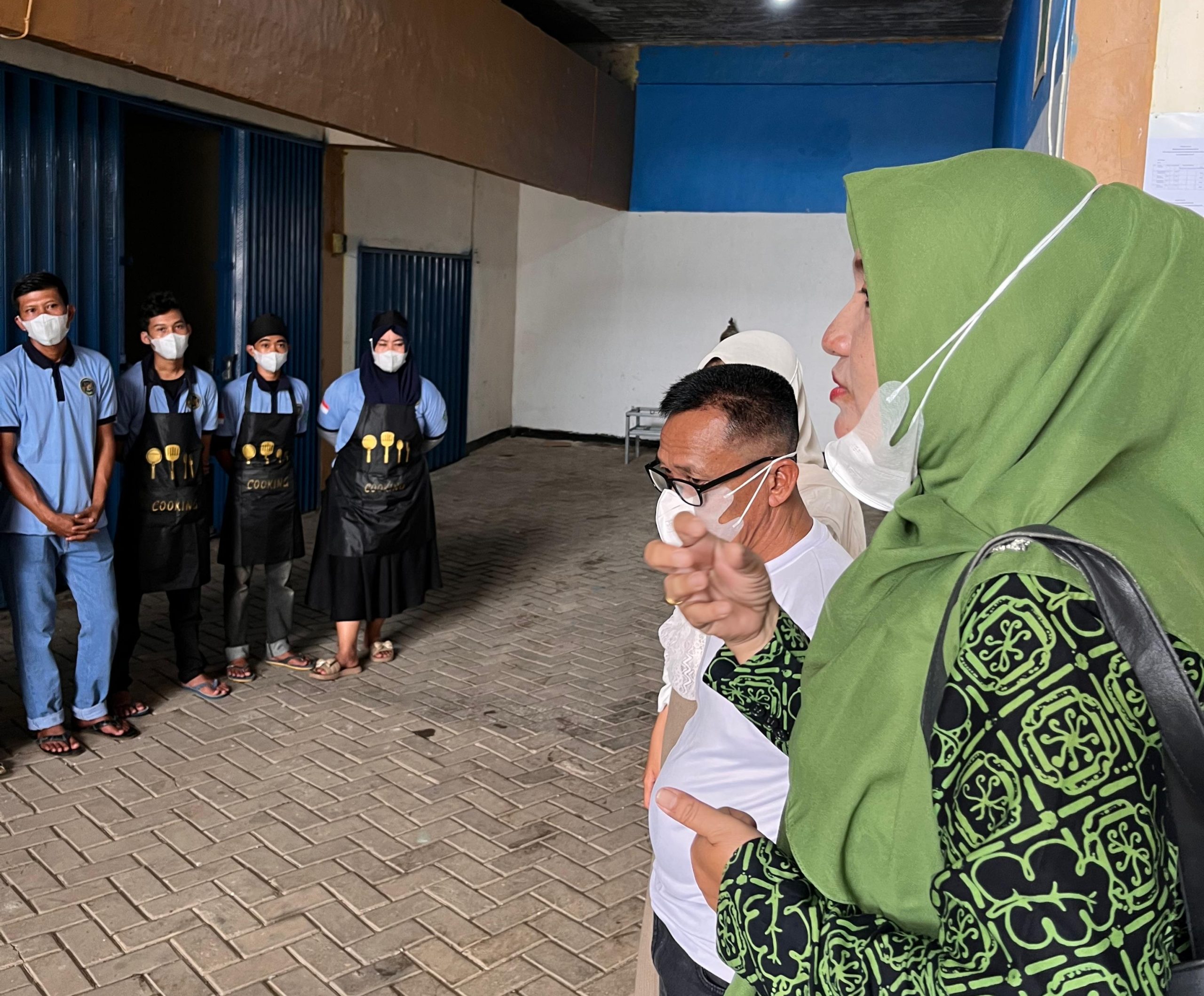 Tim melakukan pengecekan dapur umum, kualitas bahan makanan, kebersihan proses memasak, distribusi makanan, serta pemeriksaan kesehatan penerima program melalui cek kesehatan langsung.
