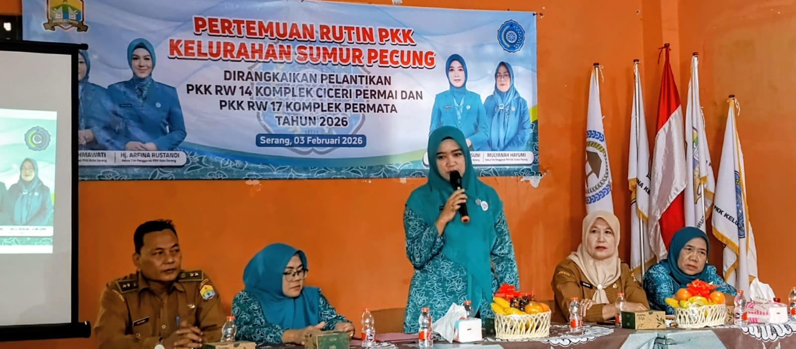 Bungas Banten, KOTA SERANG – Tim penggerak PKK Kelurahan Sumur Pecung menggelar pertemuan rutin dirangkaikan pengajian Yasin menyambut bulan nisfu sya’ban dan pelantikan ketua tim penggerak PKK RW.14 Komplek Ciceri Permai dan Ketua tim penggerak PKK RW.17 Komplek Permata tahun 2026 yang dilaksanakan di Aula Kelurahan Sumur Pecung, Kecamatan Serang, Kota Serang, Provinsi Banten. Selasa, (3/2/2026)