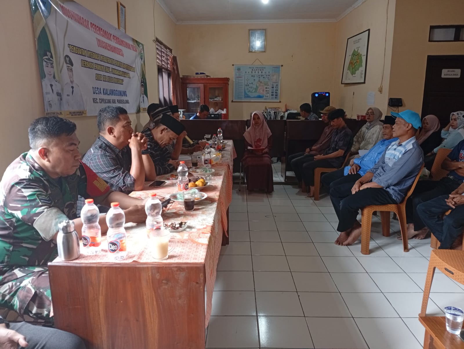 Turut hadir unsur Muspika Kecamatan Cipeucang, di antaranya Sekretaris Kecamatan Cipeucang, H. Bedi, Kasi Kesejahteraan Sosial Imron Hidayat, dan Kasi Pembangunan Endang S, yang memberikan arahan dan masukan dalam rangka sinkronisasi perencanaan pembangunan desa dengan program pemerintah daerah.