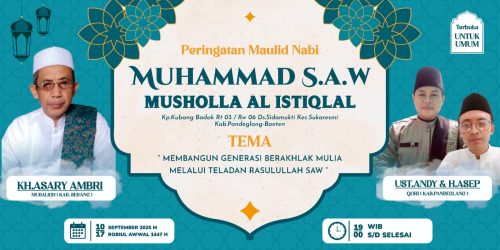 Bungas Banten, PANDEGLANG – Peringatan Hari Besar Islam (PHBI)Â di Kampung Kubang Badak Rt 03,Rw 06 Desa Sidamukti, Kecamatan Sukaresmi, Kabupaten Pandeglang, Provinsi Banten ” berjalan dengan lancar ” Rabu ( 10 September 2025)