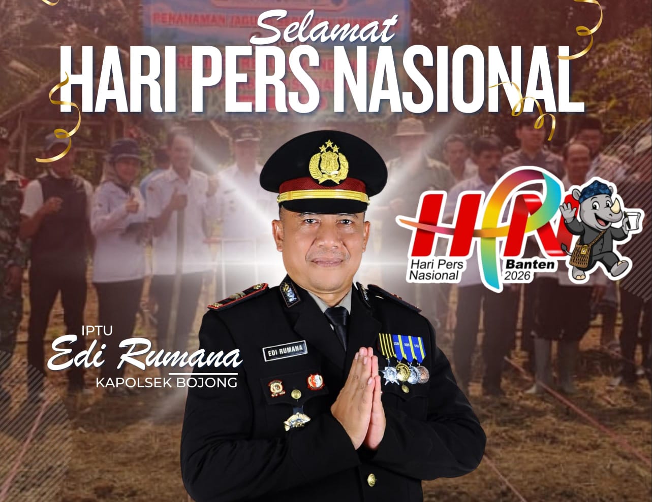 Bungas Banten, PANDEGLANG – Jajaran Polsek Bojong mengucapkan selamat Hari Pers Nasional (HPN) kepada seluruh jurnalis, pewarta, dan insan pers di seluruh Indonesia. Iptu Edi Rumana, Kapolsek Bojong, menyatakan bahwa pada hari pers nasional ini, semoga jurnalis dan pewarta makin profesional, berintegritas, dan independen dalam menjalankan tugasnya sebagai pilar keempat negara.