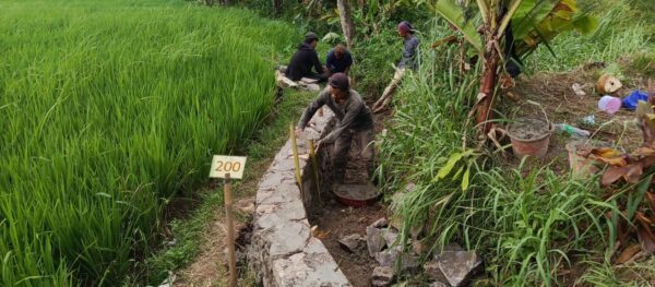 “Pekerja semuanya 7 orang yang terbagi dua kelompok, satu kelompok bawaan Komeng dan ini yang sedang di kerjakan sekarang kelompok saya (Ahmad-red) jumlahnya 7 orang, semuanya berasal dari warga kecamatan Ciomas, ada dari desa Panyaungan Jaya, desa Pondok Kahuru dan desa Lebak dan untuk upah borongan/meteran sebesar 50 ribu per meter dan untuk langsir batu atau pasir 600 ribu per mobil/dumtruck, sebenarnya sih minta di tambahin Rp 700 ribu soalnya jauh tapi tetap ngasihnya Rp 600 ribu. ” Ungkapnya kepada Bungas Banten