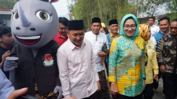 Saat masuk gerbang juga Airin-Ade sempat menyapa dua maskot Pilgub Banten yakni Bara dan Jara.