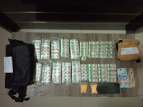 ” Saat ini, petugas mengamankan barang bukti obat keras 1.344 butir terdiri atas 260 butir berjenis hexamer dan 1.084 butir tramadol HCI, uang Rp 96 ribu, satu unit telepon seluler warna abu metalik ,dan sebuah tas selempang berwarna hitam.
