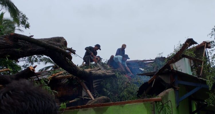 Di Kecamatan Sumur 9 Rumah Tertimpa Pohon Akibat Angin Puting Beliung