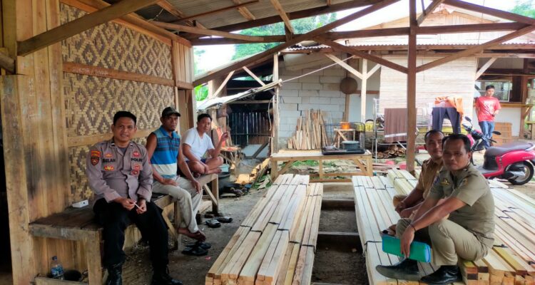 Jalin Komunikasi, Panit Sabhara Polsek Cipanas Polres Lebak Sambang Tempat Usaha Penggesekan Kayu