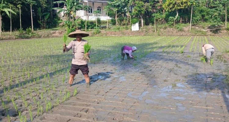 Kanit Binmas Polsek Rangkasbitung Polres Lebak Bantu Petani Tanam Bibit Padi