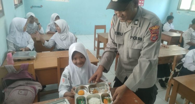 Kanit Binmas Polsek Rangkasbitung Polres Lebak Monitoring Penyaluran MBG di SMPN 2 Kalanganyar