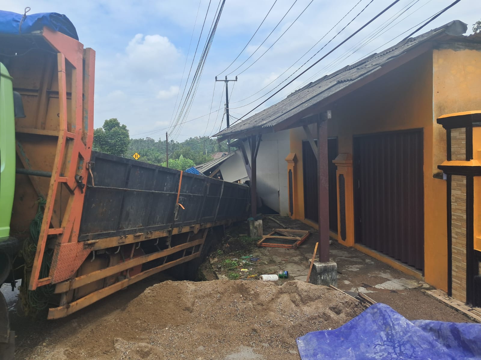 Sopir truk, Aspa Rohendi, menjelaskan bahwa truknya memang tidak kuat nanjak dan terperosok ke pinggir jalan, menyebabkan pipa besi menghantam dua rumah warga milik Carmadi dan Tabroni.