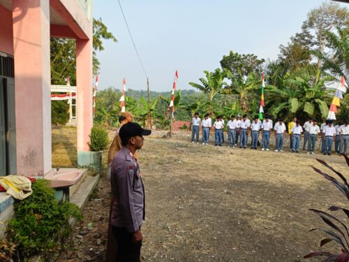 Upacara di SMK Nasional Dilaksanakan oleh Kapolsek dan Anggota Polsek Banjarsari Polres LebakĀ